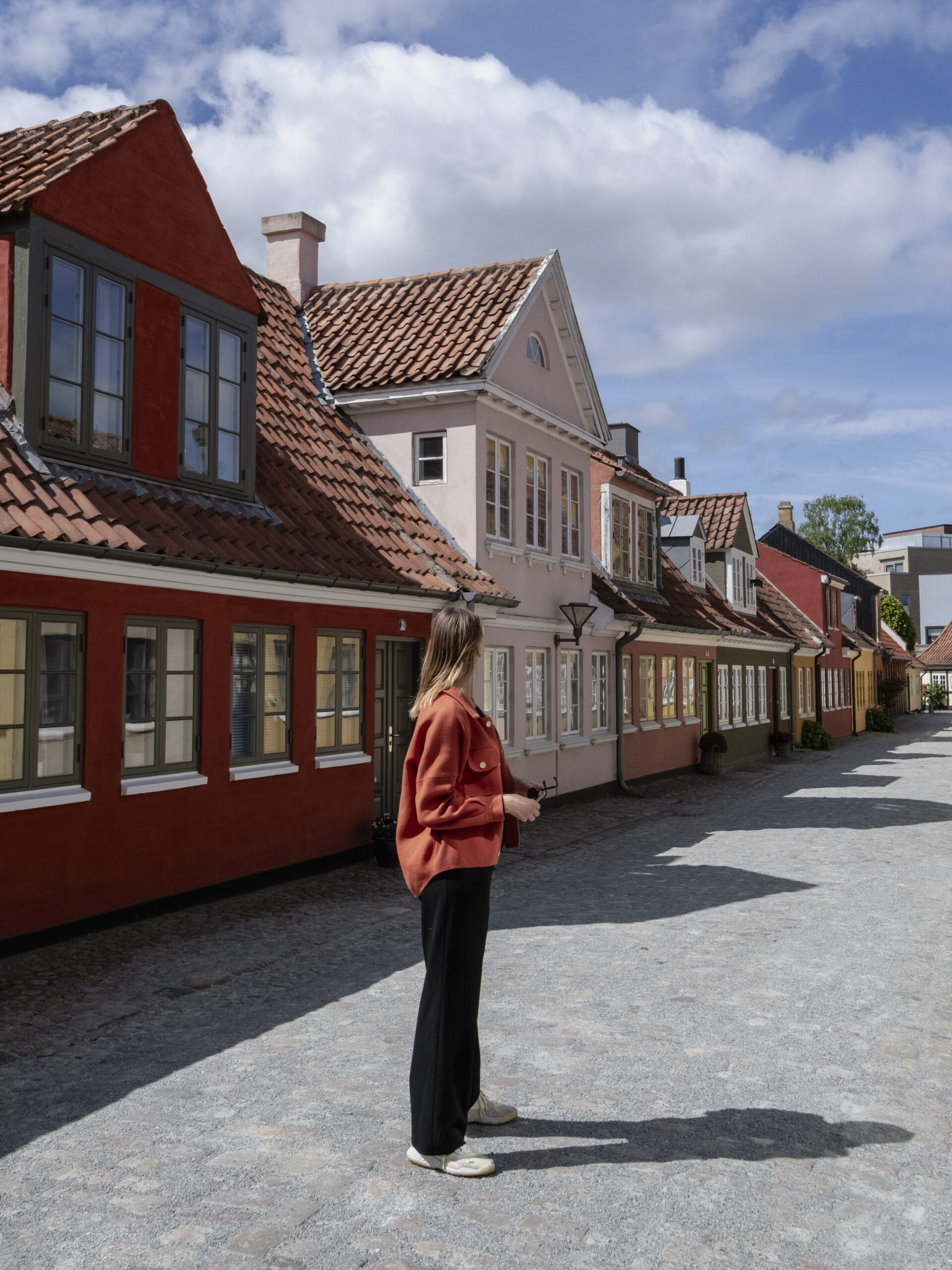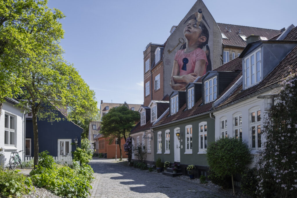 Le lendemain, nous avons enfourché nos vélos pour explorer la ville. Premier arrêt à Klostertorvet, puis balade dans les charmantes rues pavées de Møllestien, avec ses maisons colorées couvertes de roses trémières. Ensuite direction le Latinerkvarteret, le quartier latin d’Aarhus, plein de cafés et de petites boutiques. Mais ce qui nous a vraiment surpris, ce sont les immenses fresques de street art présentes un peu partout dans la ville. Elles font partie du projet 17 Walls, une initiative artistique qui transforme Aarhus en véritable galerie à ciel ouvert.