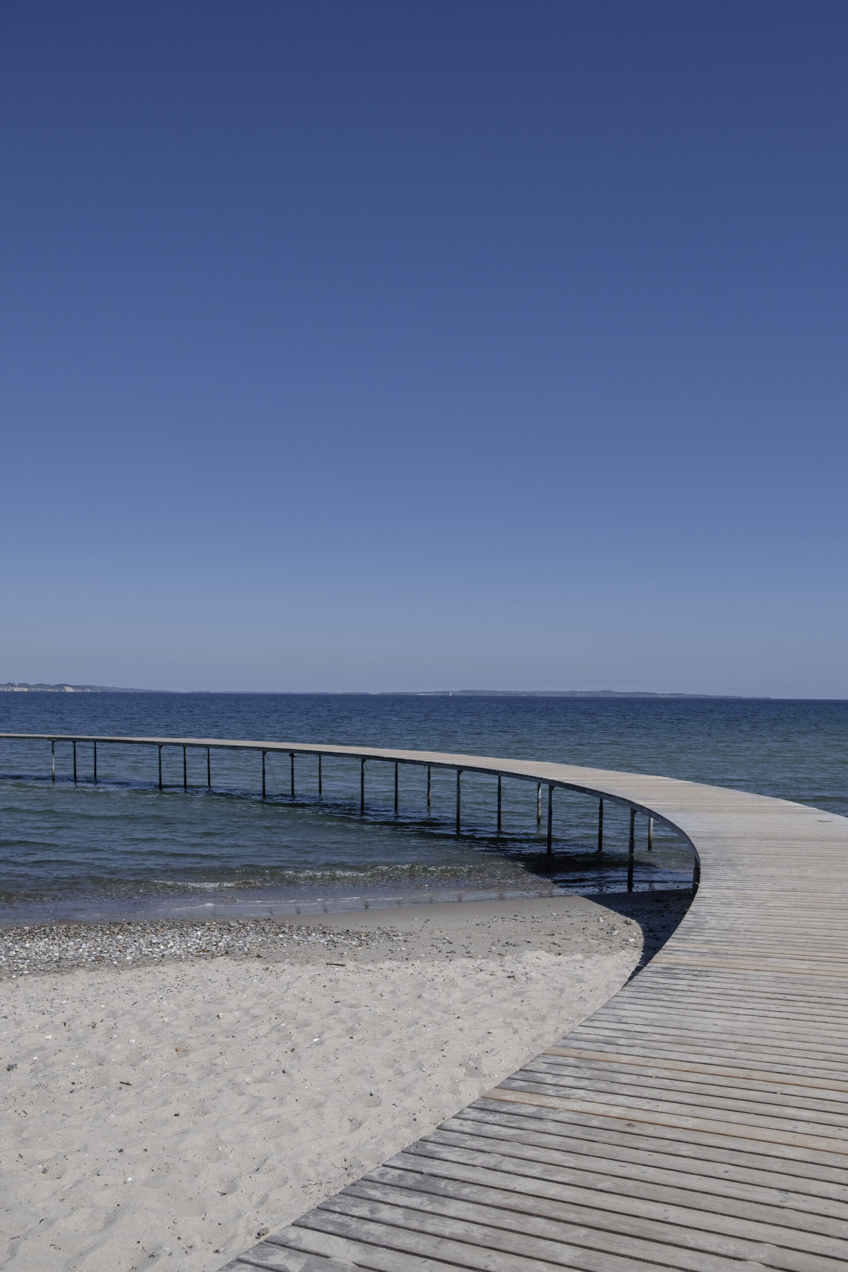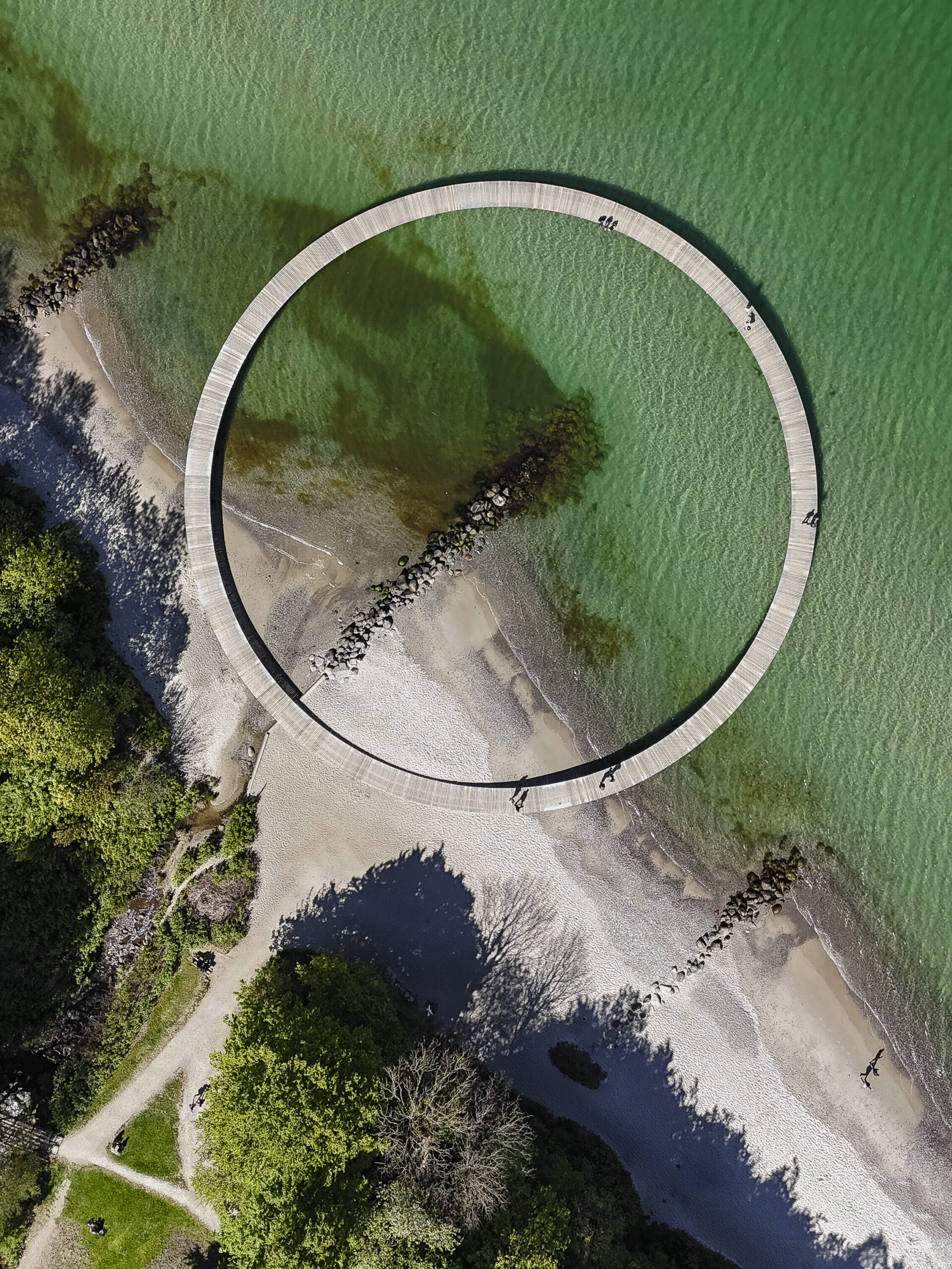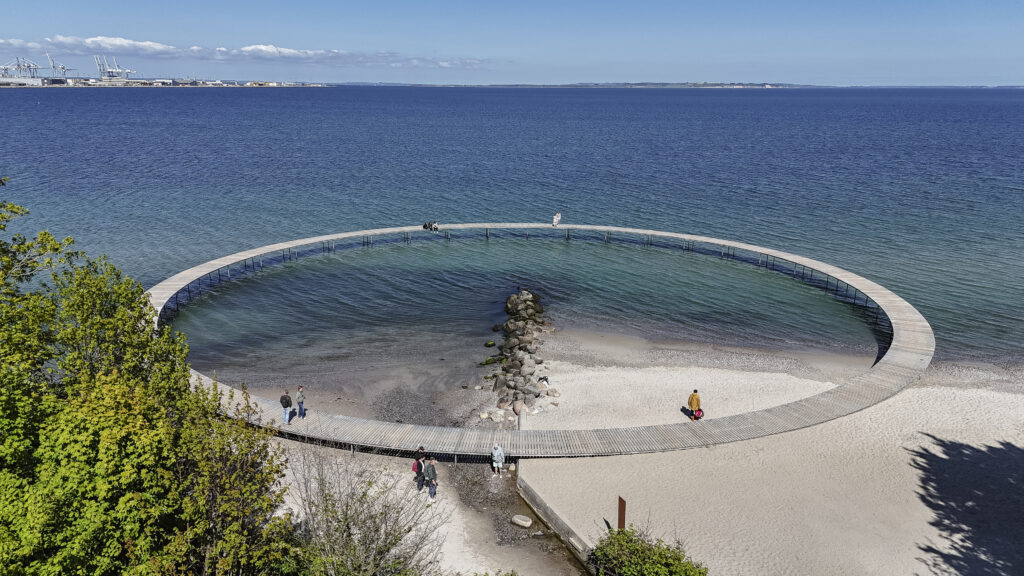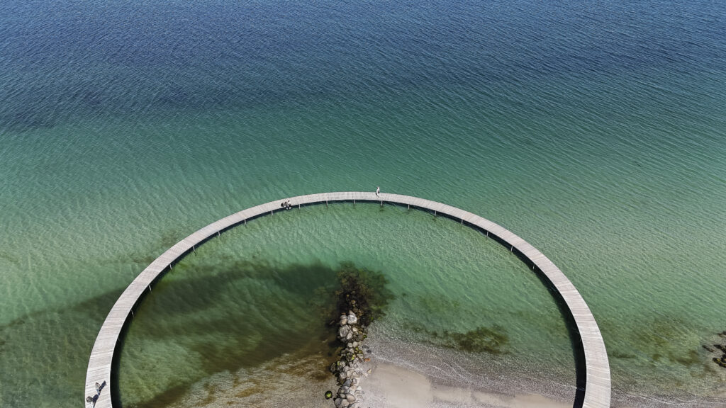 Notre dernier coup de cœur à Aarhus a été la plage de Den Permanente. Ce lieu est particulièrement reconnaissable grâce à son deck circulaire en bois qui s’avance sur la mer. La couleur turquoise de l’eau donne presque l’impression d’être sous les tropiques… la température en moins ! Cela n’empêche pas les plus courageux – ou les habitués – de plonger sans hésitation.