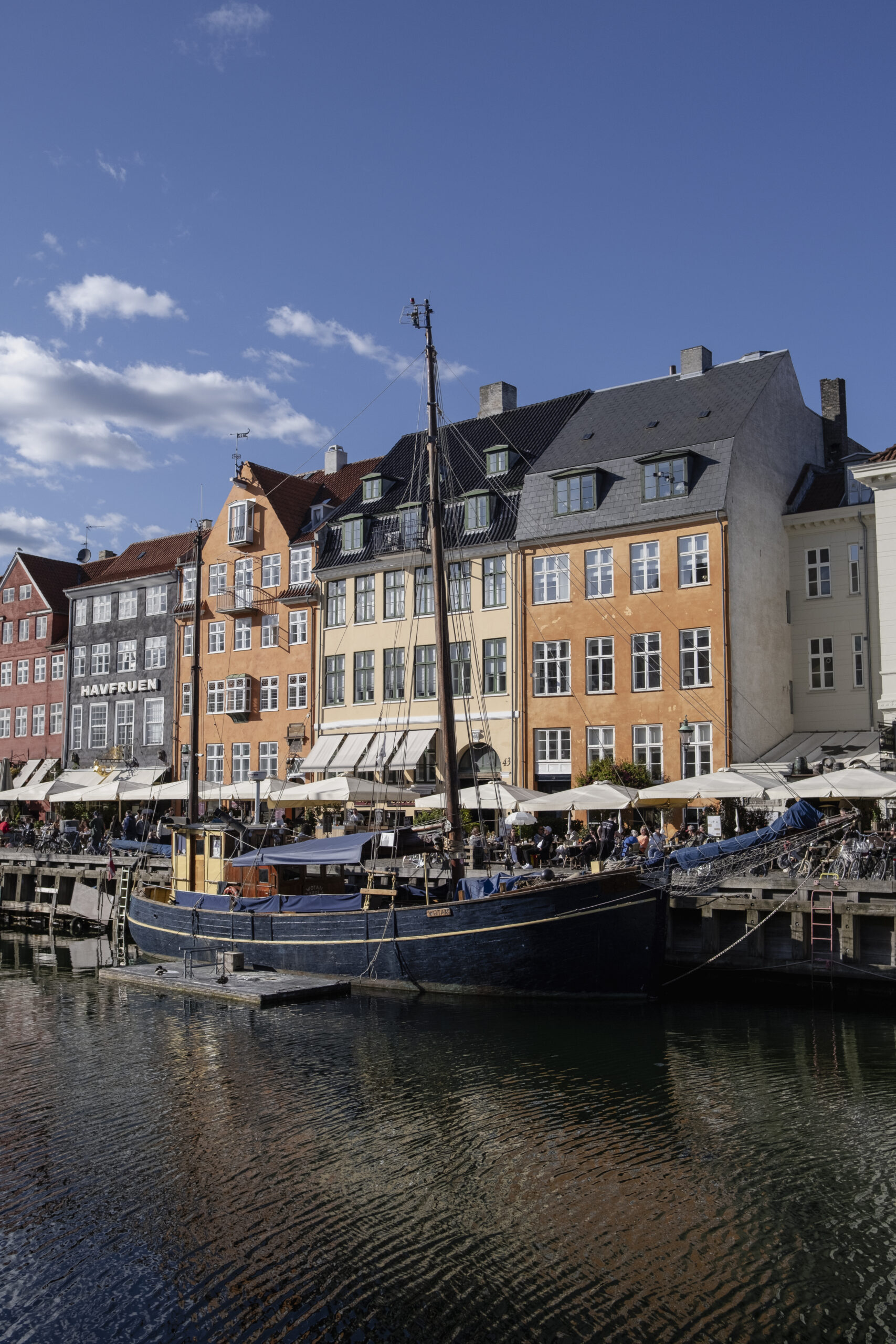 Notre première balade nous a conduits à la place de l’Hôtel de Ville, avant de se perdre dans les ruelles pittoresques du centre historique. C’est là que nous avons fait une halte à la Rundetårn (la célèbre Tour Ronde), avant de pédaler jusqu’à Nyhavn, l’incontournable port aux maisons colorées. Voir ces façades refléter dans l’eau est vraiment l’image de carte postale qu’on associe immédiatement à la ville. Nous avons ensuite continué jusqu’à Christianshavn, un quartier au charme singulier, entre canaux et atmosphère un peu bohème.